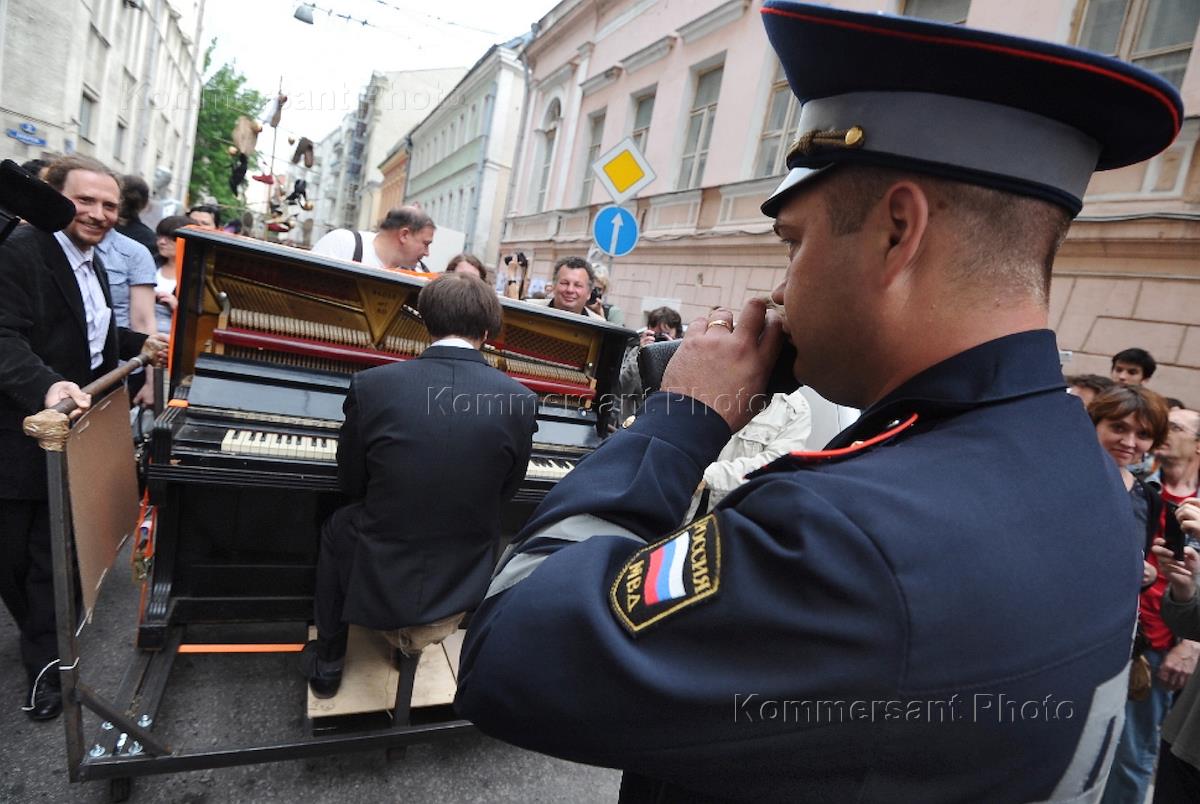Шествие художников "Кочевой музей современного искусства" по Бульварному кольцу.