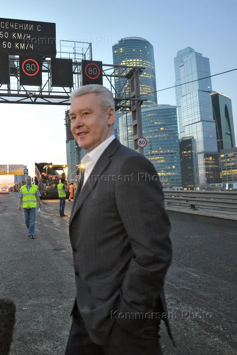 Мэр Москвы Сергей Собянин во время осмотра ремонтно-строительных работ на Третьем транспортном…