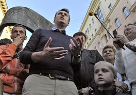 В лагере оппозиционных "народных гуляний" у памятника Булату Окуджаве на Арбате.