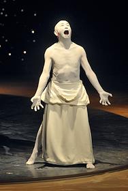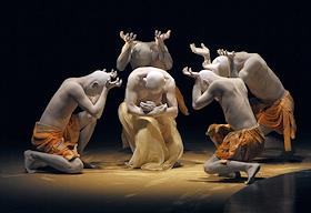 Культура Спектакль "Тобари - в бесконечном потоке" Театра современного японского танца "Санкай Дзюку" (танцевальное течение Буто) на сцене театра Российского академического молодежного театра (РАМТ).