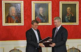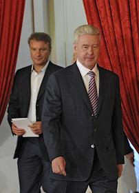 Президент, председатель правления Сбербанка России Герман Греф (слева) и мэр Москвы Сергей Собянин…