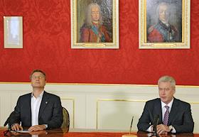 Экономика и бизнес Подписание соглашения о сотрудничестве мэрии Москвы со Сбербанком России. В Церемонии приняли участие мэр Москвы Сергей Собянин и глава Сбербанка России Герман Греф.
