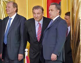 Министр спорта России Виталий Мутко (справа) во время церемонии чествования хоккеистов сборной…