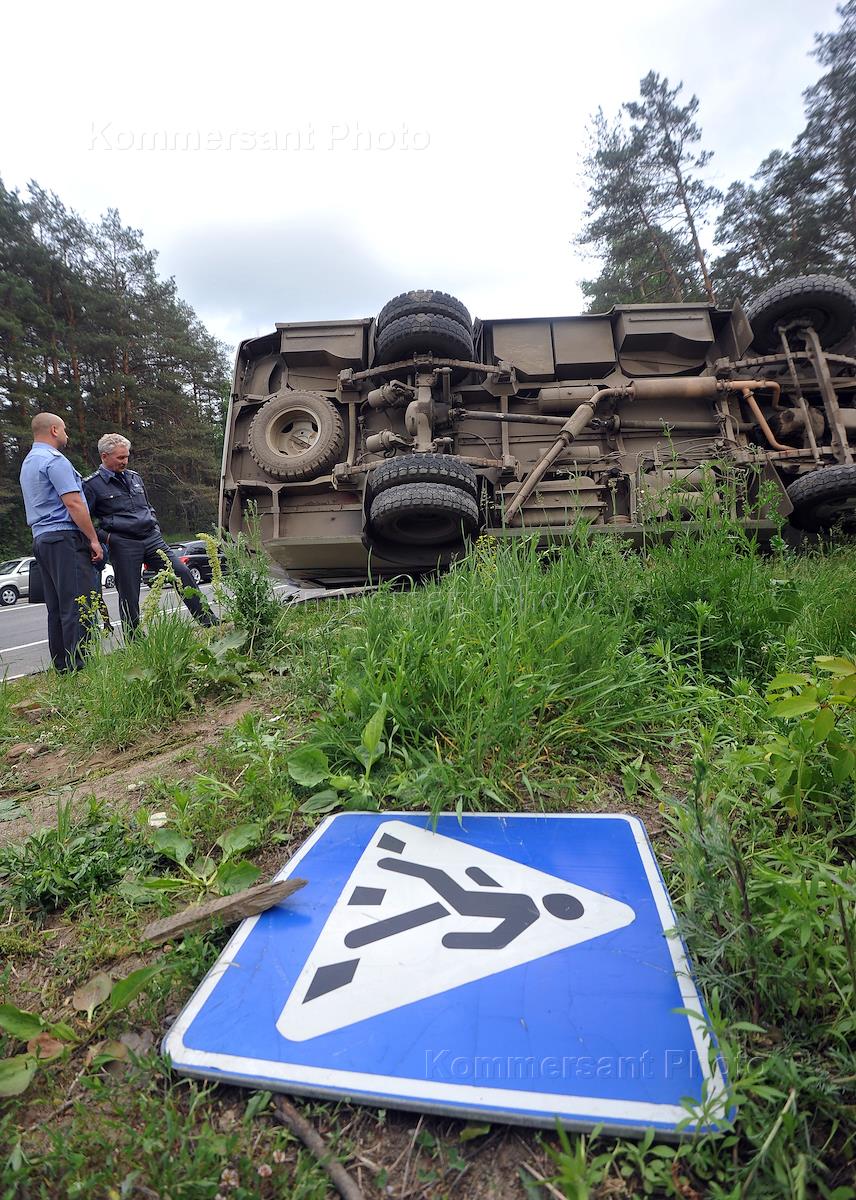 Сотрудники полиции на месте дорожно-транспортного происшествия с участием пассажирского автобуса на…