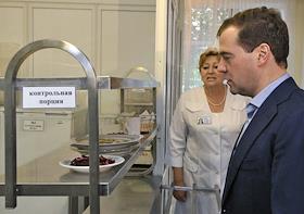 Председатель правительства России Дмитрий Медведев (справа) во время посещения детского…