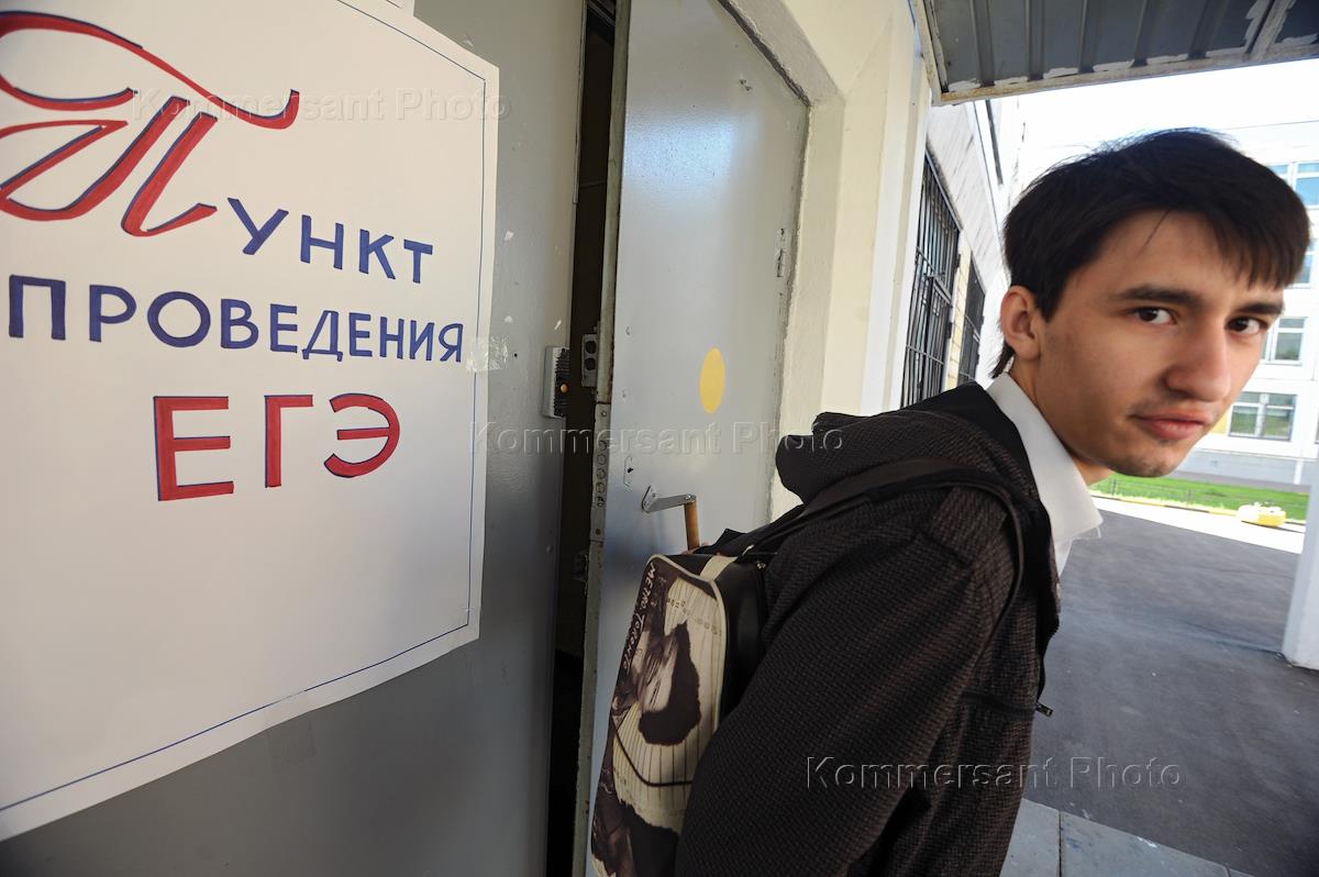 Школьники и приемная комиссия перед сдачей Единого Государственного экзамена (ЕГЭ) по французскому…