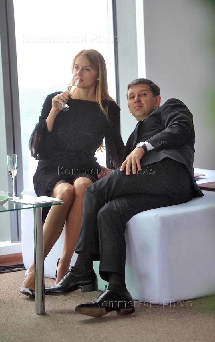 Галеристка Елена Дужая (слева) и бизнесмен Олег Байбаков (справа) на презентации объектов…