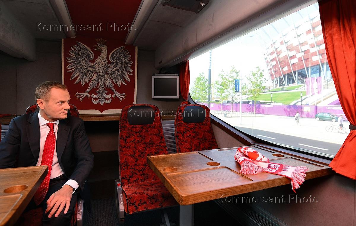 Премьер-министр Польши Дональд Туск на стадионе во время футбольного матча.