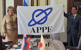 Политика Церемония передачи Председателю Совета Федерации Валентине Матвиенко флага Азиатско-Тихоокеанского парламентского форума (АТПФ) в Совете Федерации.