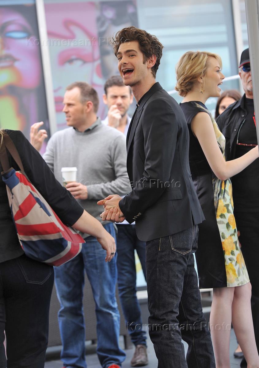 Актер Эндрю Гарфилд во время фотоколла творческой группы фильма "Новый Человек - паук" на крыше…