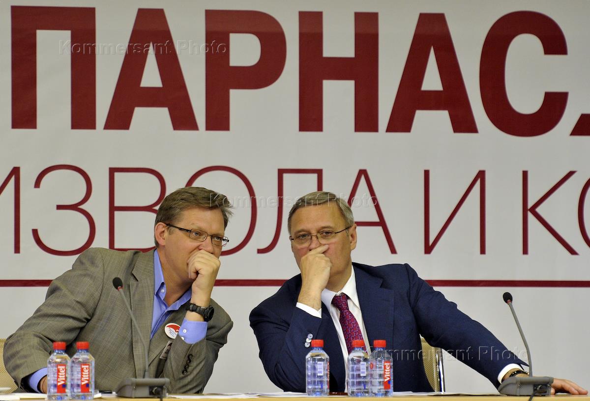 Сопредседатели Партии народной свободы (ПАРНАС) Владимир Рыжков (cлева) и Михаил Касьянов (справа)…