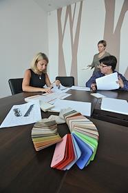 Генеральный директор компании "Мебелинк" Ирина Корзун (cправа) в своем офисе.