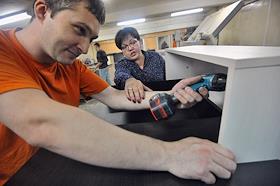 Генеральный директор компании "Мебелинк" Ирина Корзун (справа) в своем офисе.