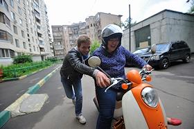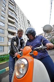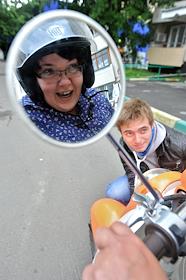 Генеральный директор компании "Мебелинк" Ирина Корзун за управлением мотоцикла.