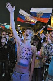 Культура Чемпионат Евромы по футболу (Евро 2012). Фан-зона EURO 2012 на территории Центрального парка культуры и отдыха (ЦАКиО) М.Горького. Болельщики во время трансляции матча между сборными командами России и Греции.