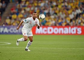 Чемпионат Европы UEFA по футболу "EURO 2012". Игрок сборной команды Англии Эшли Коул во время матча…