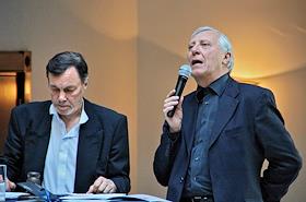 Режиссер Питер Гринуэй (справа) во время благотворительного аукциона в помощь детям, пострадавшим в…