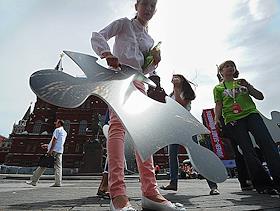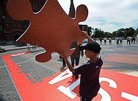 Год Германии в России. Сборка пазла "Автопортрет" Альбрехта Дюрера на Манежной площади.