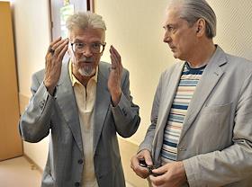 Лидер незарегистрированной партии "Другая Россия" Эдуард Лимонов (слева), обвиняемый в нарушении…