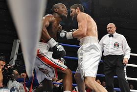 Боксерского шоу THUNDER OF JUNE - "Буря в июне" в УСКА ЦСКА. Поединок боксеров первого полусреднего веса Хабиба Аллахвердиева и Кендалла Холта.