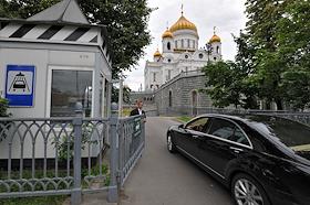 Храм Христа Спасителя. Въезд на подземную парковку храма.