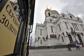 Виды Москвы. Храм Христа Спасителя. Магазин "Горячий хлеб".