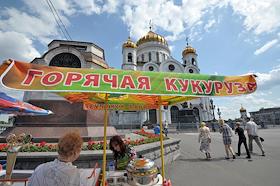 Храм Христа Спасителя. Продажа горячей кукурузы на площади у храма.