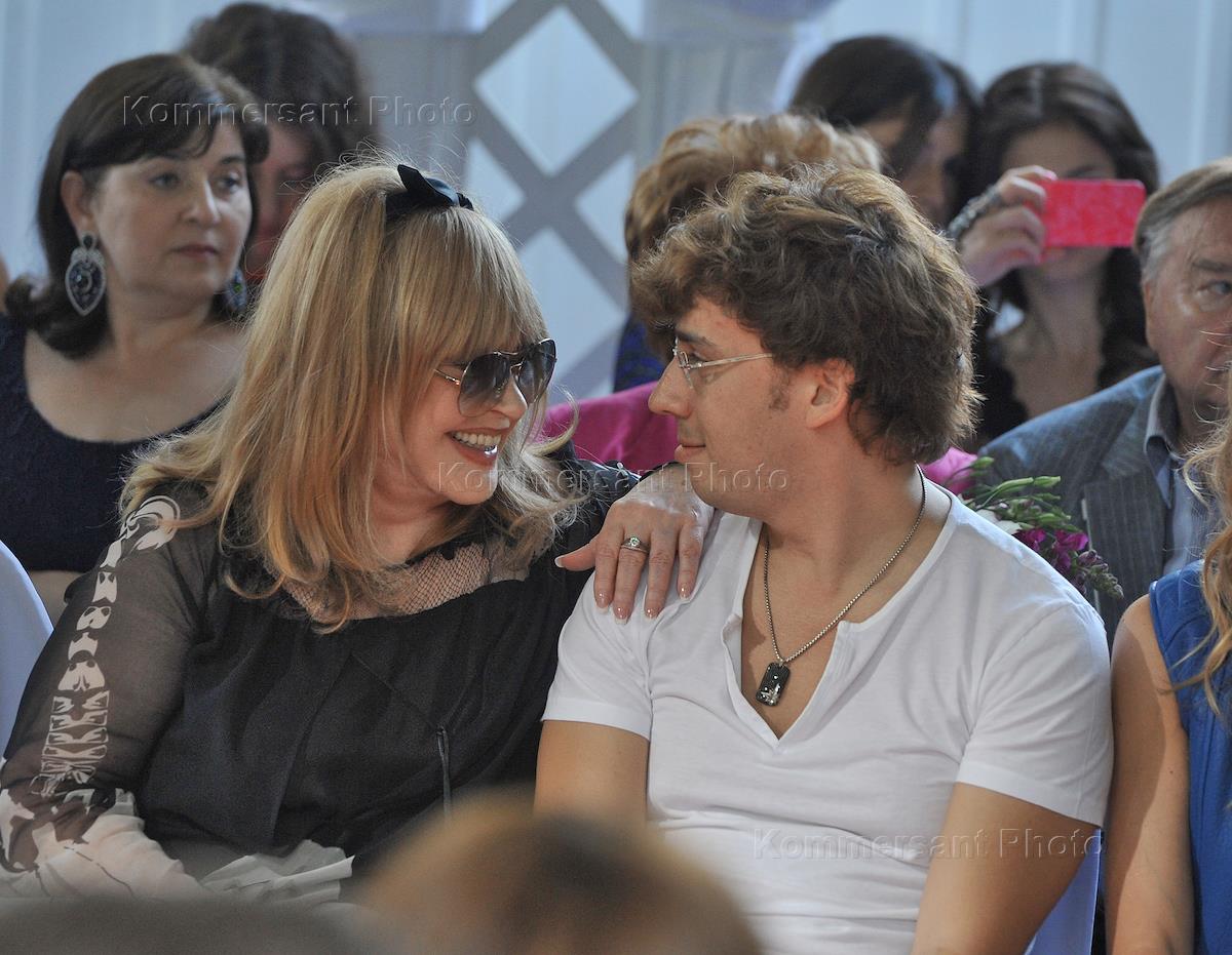 Певица Алла Пугачева (слева) и артист эстрады Максим Галкин (справа) на показе коллекции "Китайская…