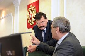 Заместитель министра транспорта России Валерий Окулов (в центре) и руководитель Федерального…