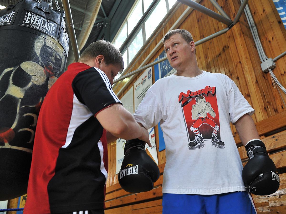Спорт Открытая тренировка с участием чемпиона мира по версии WBA Александра Поветкина, его нового тренера Кости Цзю и промоутера Поветкина Владимира Хрюнова.