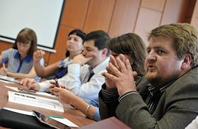 Руководитель проекта WorldSkills Russia (WSR) Павел Черных (в центре) во время первого совещания…