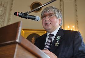 Кинокритик Кирилл Разлогов на приеме по случаю церемонии вручения ему знака отличия Кавалера Ордена…