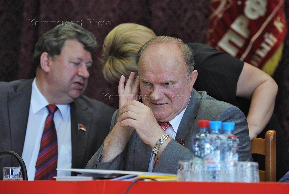 Лидер Коммунистической партии России (КПРФ) Геннадий Зюганов (слева) на пленуме ЦК КПРФ в…