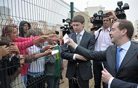 Рабочая поездка Председателя правительства РФ Дмитрия Медведева во Владивосток, Южно-Сахалинск и Петропавловск-Камчатский. принял участие в церемонии открытия движения по мосту через пролив Босфор Восточный. посетил Межрегиональный центр сбора, обработки и передачи мониторинговой и прогнозной информации о сейсмических событиях Дальнего Востока и цунами. в Петропавловске-Камчатском, посетил новый микрорайон жилой застройки. заседание Государственной комиссии по вопросам социально-экономического развития Дальнего Востока, Республики Бурятия, Забайкальского края и Иркутской области. встрече с активом партии "Единая Россия" во Владивостоке. совещание "О повышении устойчивости жилых домов, основных объектов и систем жизнеобеспечения в сейсмических районах России"