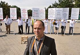 Митинг московских операторов наружной рекламы прошел в Новопушкинском сквере. Участник митинга "с…