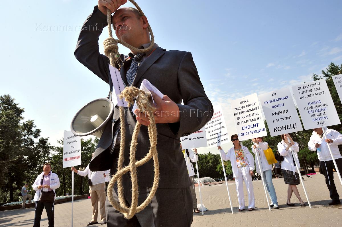 Митинг московских операторов наружной рекламы в Новопушкинском сквере.