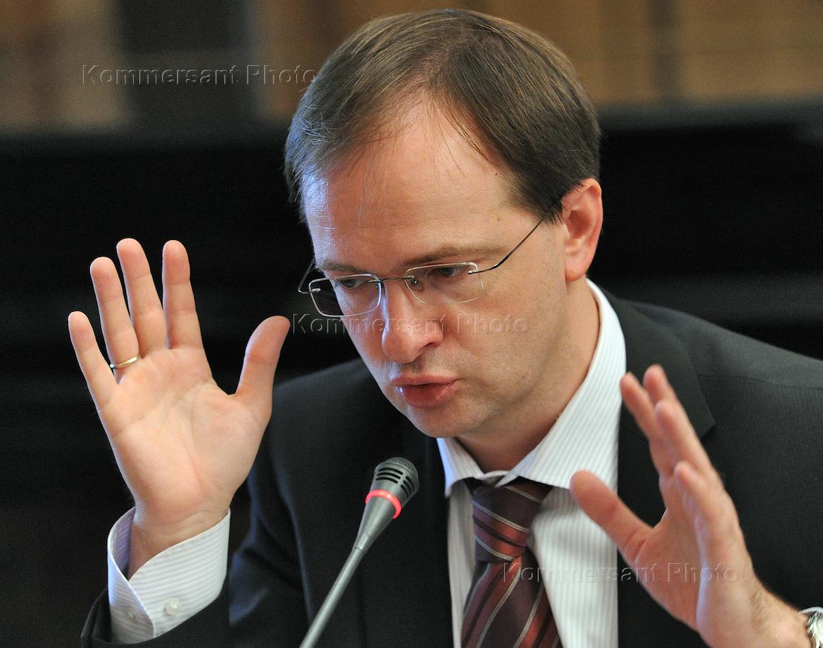 Министр культуры России Владимир Мединский (слева) и первый заместитель председателя комитета…
