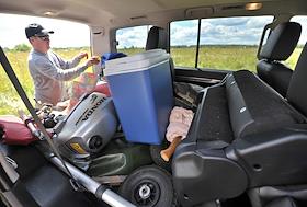 Тест-драйва автомобиля Mitsubishi Pajero (Мицубиси Паджеро). Багажник автомобиля.