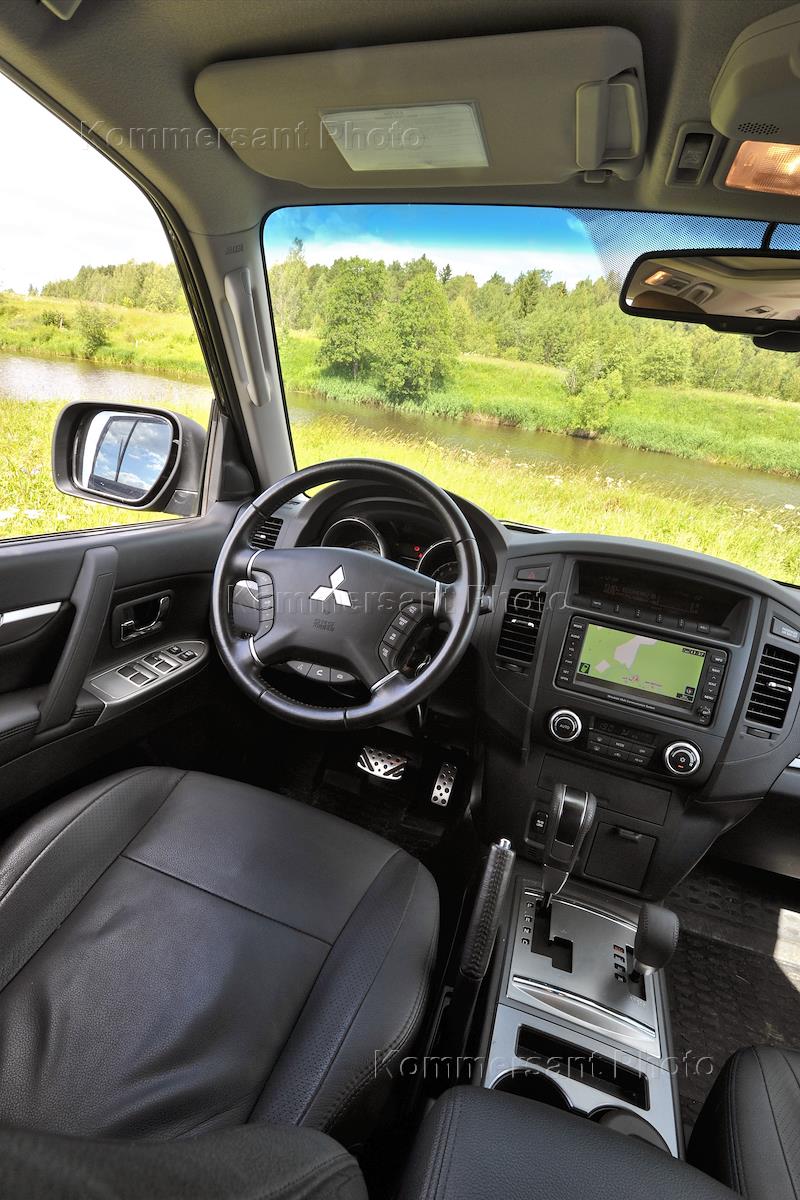 Тест-драйва автомобиля Mitsubishi Pajero (Мицубиси Паджеро). Водительское место, руль управления и…