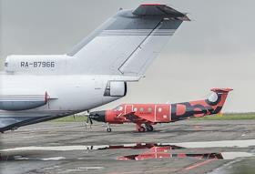 Самолет Pilatus PC-12 авиакомпании Dexter в аэропорту города Липецк.