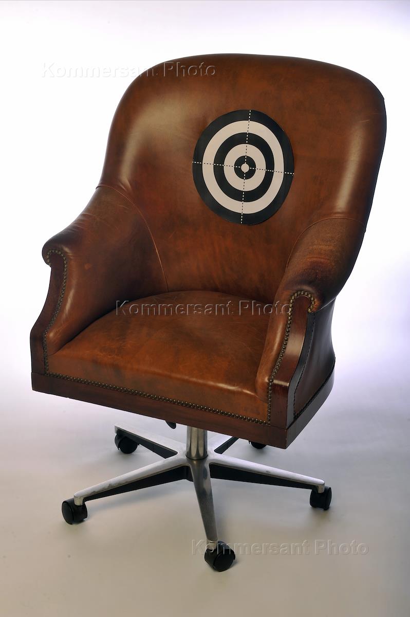 Обложка для журнала "Деньги". Офисное кресло с мишенью на спинке.