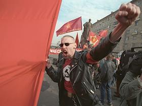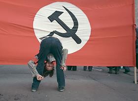 Участник молодежного марша леворадикальных сил в рамках акции "Антикапитализм 2002" на площади у…