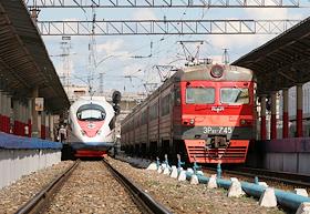 Железнодорожные пути и поезда у Московского вокзала. Отправление поезда "Сапсан".