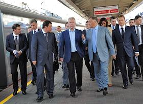 Президент ОАО "Российские железные дороги" (РЖД) Владимир Якунин (второй слева) и мэр Москвы Сергей…