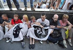 Участники акции "Стратегии-31" в защиту свободы собраний на Триумфальной площади.