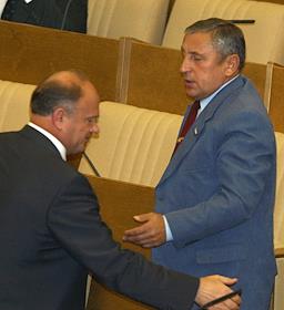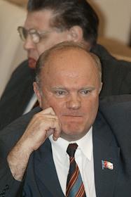 Лидер КПРФ Геннадий Зюганов (слева) на пленарном заседании Государственной Думы России.