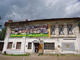 Виды моногорода Тутаева в Ярославской области. Старый заброшенный дом с заколоченными окнами.