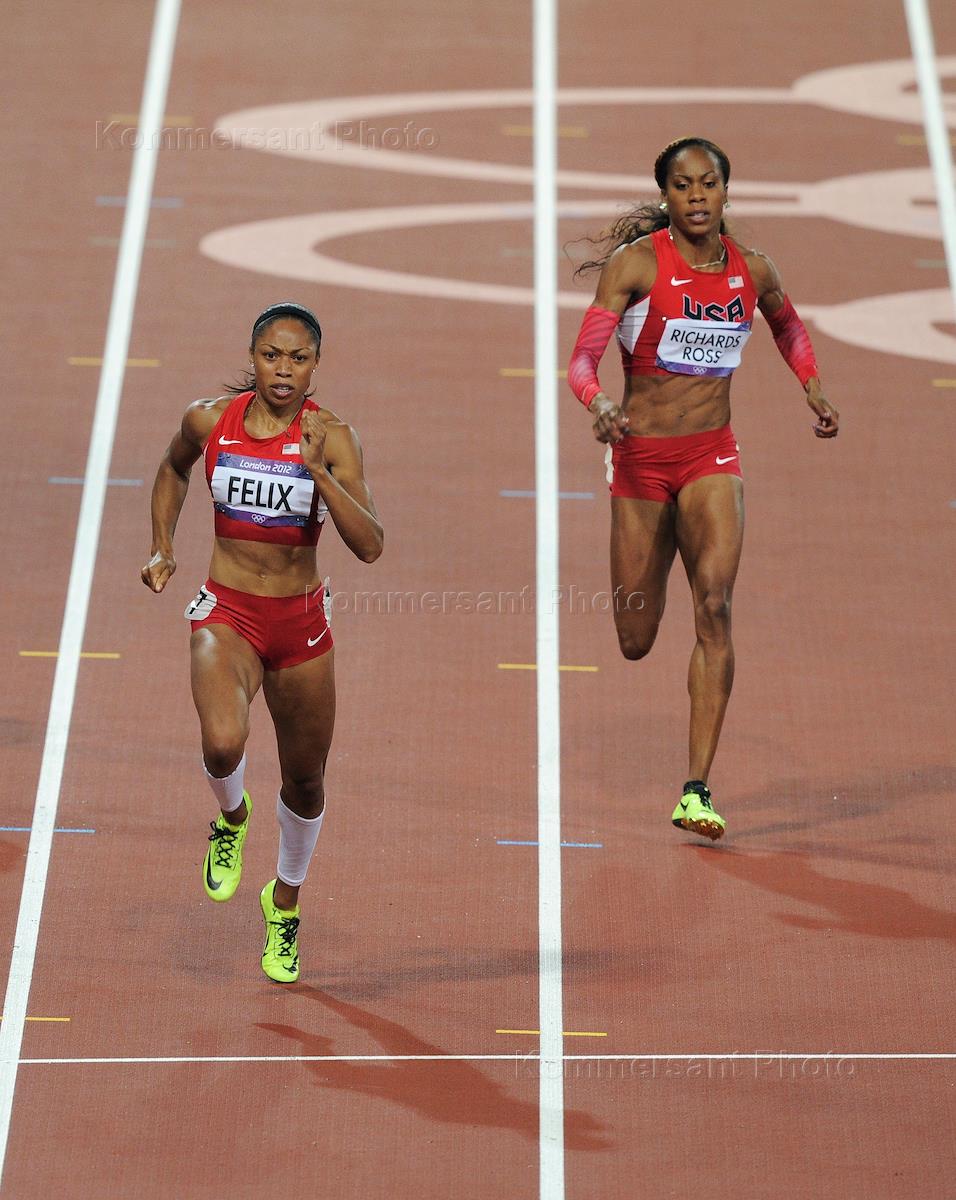 XXX Олимпийские игры в Лондоне. Члены олимпийской сборной США Эллисон Феликс (слева) и Саня…