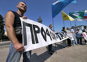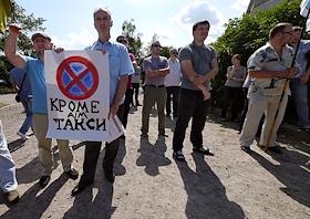 Общество Митинг, организованный московскими таксистами, чтобы обратить внимание общественности и властей на проблемы работы такси, в сквере Суворовской площади.