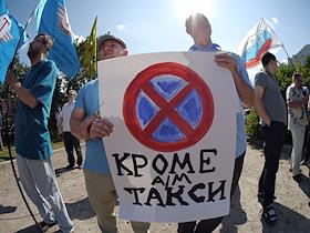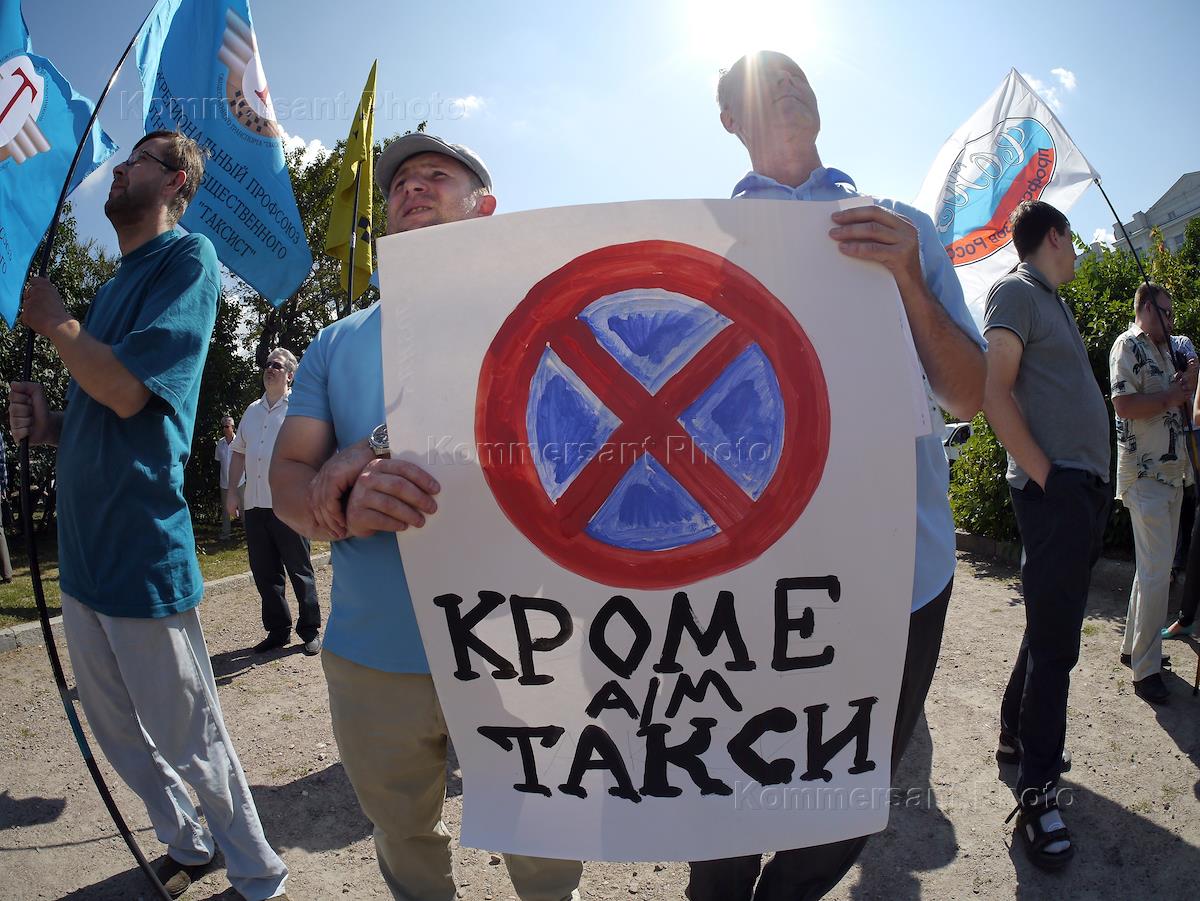 Участники митинга, организованного московскими таксистами, чтобы обратить внимание общественности и…
